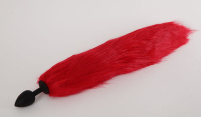 Силиконовая анальная пробка с длинным красным хвостом Красная лиса