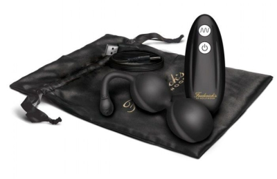 Вагинальные шарики из черного силикона с 7 различными функциями вибраций и пульсаций. Режимы работы переключаются с помощью радиопульта, сами шарики заряжаются от usb. Вибрацией можно управлять с помощью пульта: чтобы подключить пульт к шарикам, нажмите кнопку включения на шариках, огонек будет мигать. Нажмите кнопку включения на пульте, когда огонек престанет мигать, значит устройство синхронизируется. Если хотите использовать игрушку без пульта, то режимы работы переключаются той же кнопкой включения на кончики шнура. Шарики имеют travel-lock (защиту от внезапного включения) для этого задержите кнопку на массажере на 3 секунды. Шарики имеют защиту от брызг. Для полной зарядки требуется до 2 часов, время работы составляет 60 минут. В комплекте черный чехол для хранения, оберточная бумага для коробки и атласная лента с подарочной открыткой в конверте.