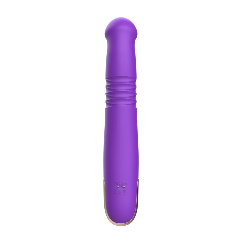 Фиолетовый вибратор-ротатор со стимулятором клитора и возвратно-поступательными движениями - 22,4 см.
