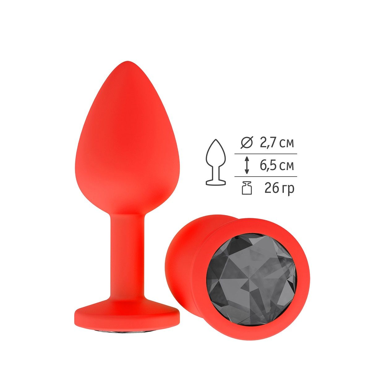 Гладенькая силиконовая пробка с кристаллом в ограничительном основании. Рабочая длина - 6,5 см.