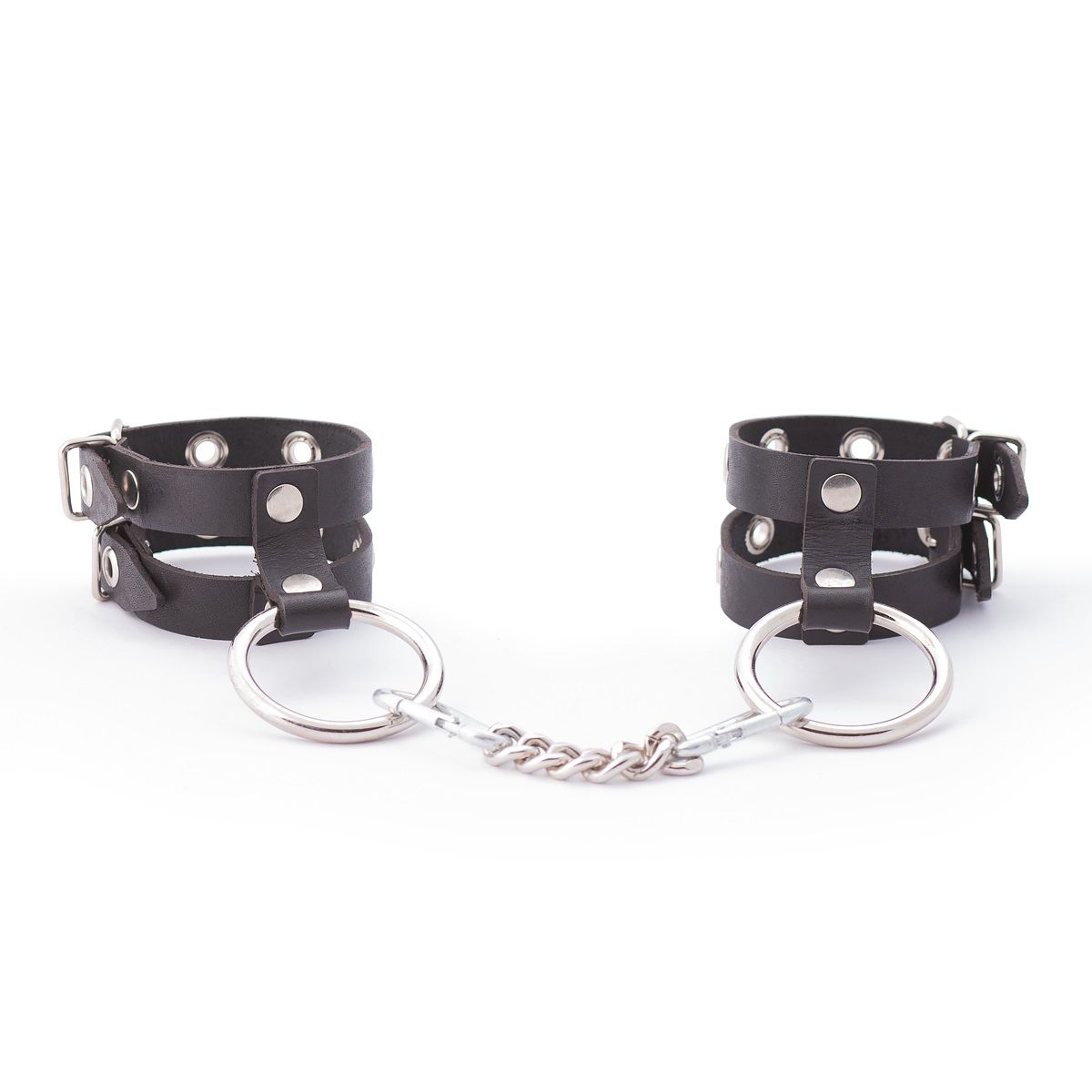 Наручники представляют собой два ремешка из натуральной кожи, соединенных посередине.